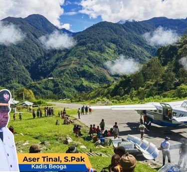 2. Masa Pemerintahan Kabupaten Puncak Jaya Sebelum terbentuknya Kabupaten Puncak, Beoga merupakan bagian dari wilayah administratif Kabupaten Puncak Jaya. Pada masa ini, Beoga menjadi pusat pelayanan bagi masyarakat di wilayah pedalaman karena keberadaan landasan pacu (airstrip) perintis yang dibangun oleh para misionaris. Jalur udara ini menjadi satu-satunya urat nadi kehidupan yang menghubungkan warga lokal dengan dunia luar.
